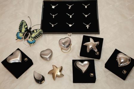 In unserem Gedenkportal haben Sie die Möglichkeit, das Andenken an den Verstorbenen gemeinsam mit der Trauergemeinschaft zu bewahren. Bei einer Feuerbestattung können wir zusätzlich auf Wunsch einzigartige Erinnerungsstücke für Sie anfertigen: Dabei füllen wir einen Teil der Asche in ein edles Amulett oder in eine hochwertige Figur wie ein Herz, Stern oder in einen Schmetterling.